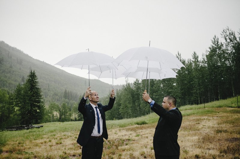 A truly biblical day, as we came off a month long stretch of 100 degree weather. On this of all day's the heaven's opened up and unleashed a massive storm. The ranch they chose as the location for their day, epic and beautiful in all it's natural splendor, came complete with a ceremony site with a 360 degree view of aspens, alongside a beautifully decorated reception tent done to the nines by "Alexan Events". However with all the heavy and relentless rain, we had to forego the aspen grove, however.... With resolve and a fair amount of gumption, Jerry and Kari decided to still get married outside! From that second on, I was as happy as an 8 yr old who caught a bullfrog. We had ventured off the map of plans and arrangements and headed into the wilds of the unknown; my favorite place to be. The day was filled with umbrellas, soggy shoes, and endless smiles!